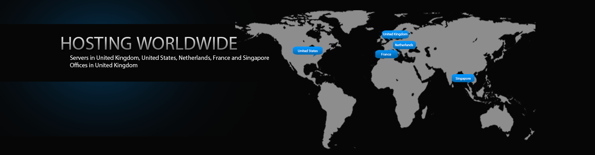 We have servers in multiple locations as we want to be your provider both locally and internationally and also provide a worldwide hosting service for the global market. Servers are available in France, US, Netherlands, UK, Singapore.
